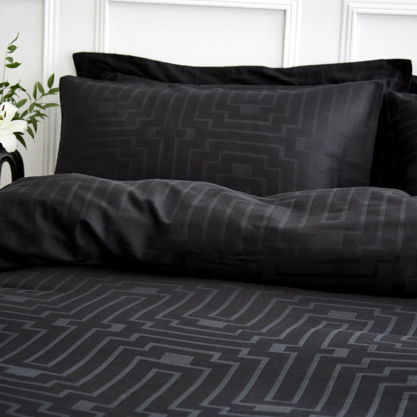 The epitome of luxury hotel styling, this soft pure cotton geometric jacquard bedlinen with silky satin finish is the perfect option for a relaxed and comfortable sleep.