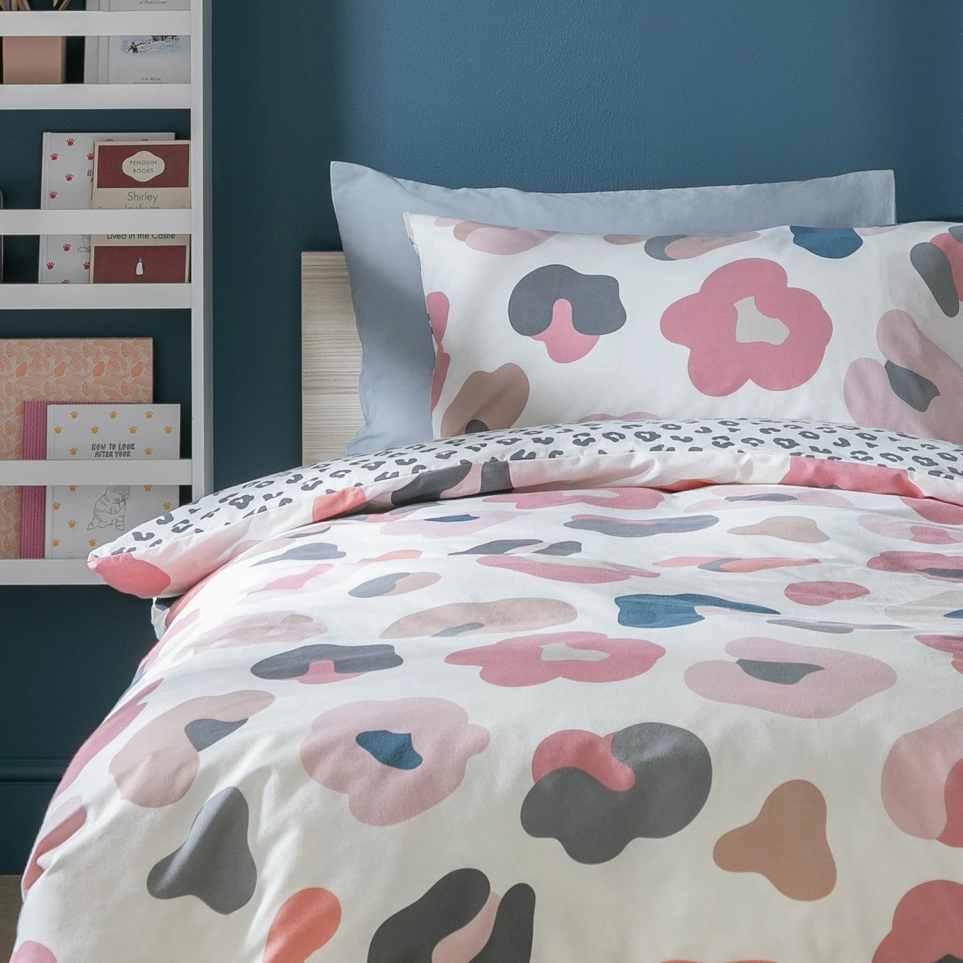 There's no camouflaging this flamboyant animal print single bedding set. An abstract take on a classic design it adds real wow to the bedroom. In the tones of pinks and greys and with a monotone reverse, you can ring the changes in an instant.