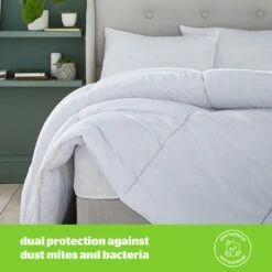 Sleep easy. Filled with 100% recycled polyester fibres that have been specially treated to fight off dust mites and bacteria, this 10.5 tog duvet is perfect all year round.