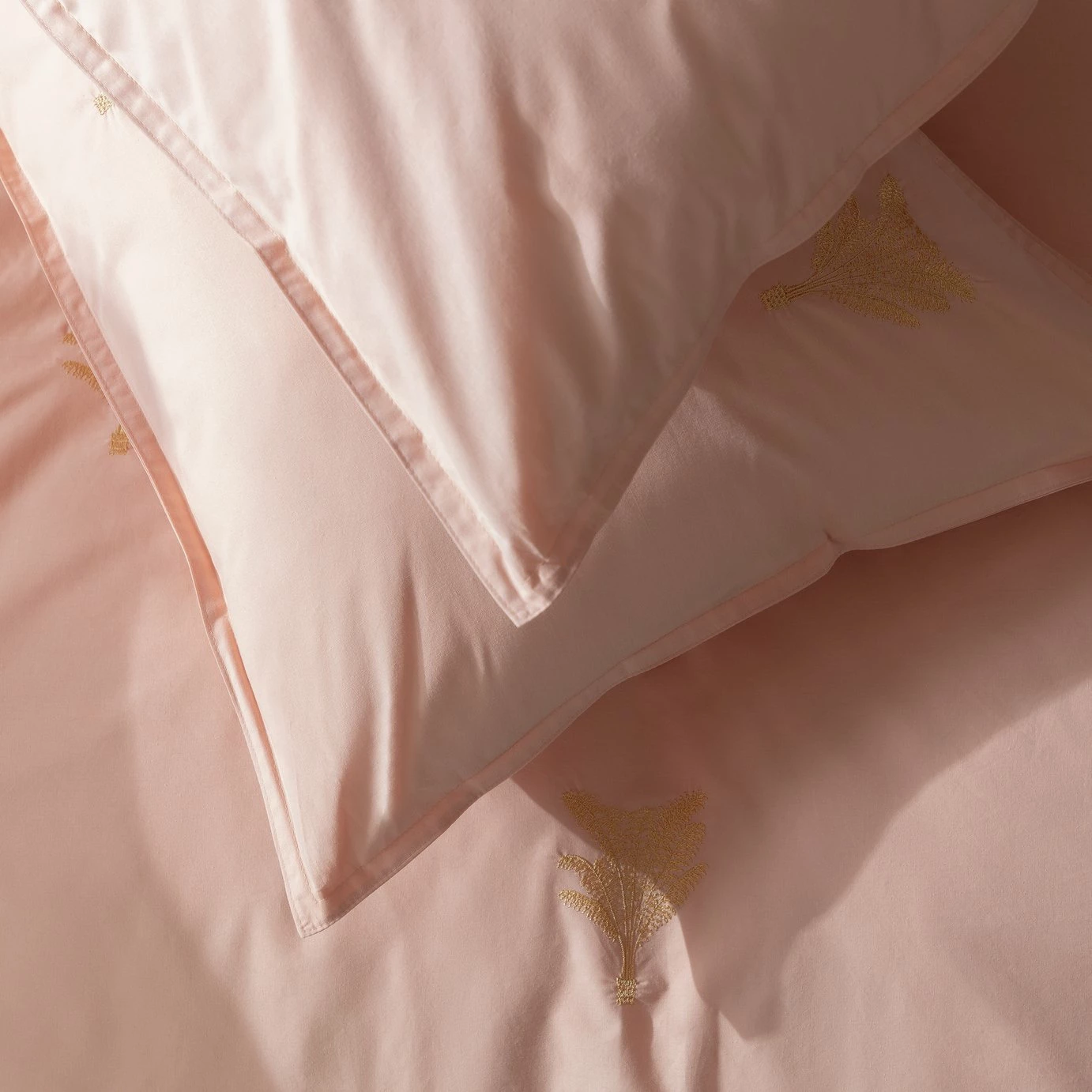 Sweet dreams. Our single bedding set is pretty pastel perfection. In soft pink embellished with embroidered golden palms, it's romantically delicate. Made from polycotton so it's easy to keep looking fresh. Snuggle in.