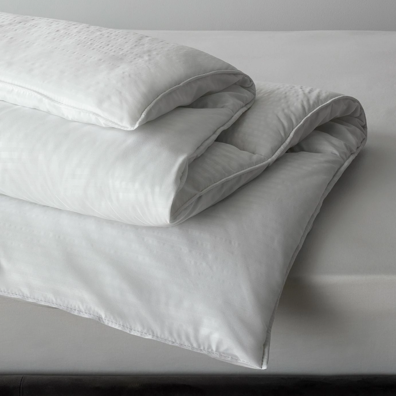 Love the feel of natural bedding but don't fancy feathers? Our Feels Like Down range is just the ticket. With a premium hotel quality embossed stripe cover and a smart stitch finish, it provides a real feeling of luxury. This 10.5 Tog duvet is perfect for year-round use and is filled with siliconised recycled polyester for a featherweight feel.
