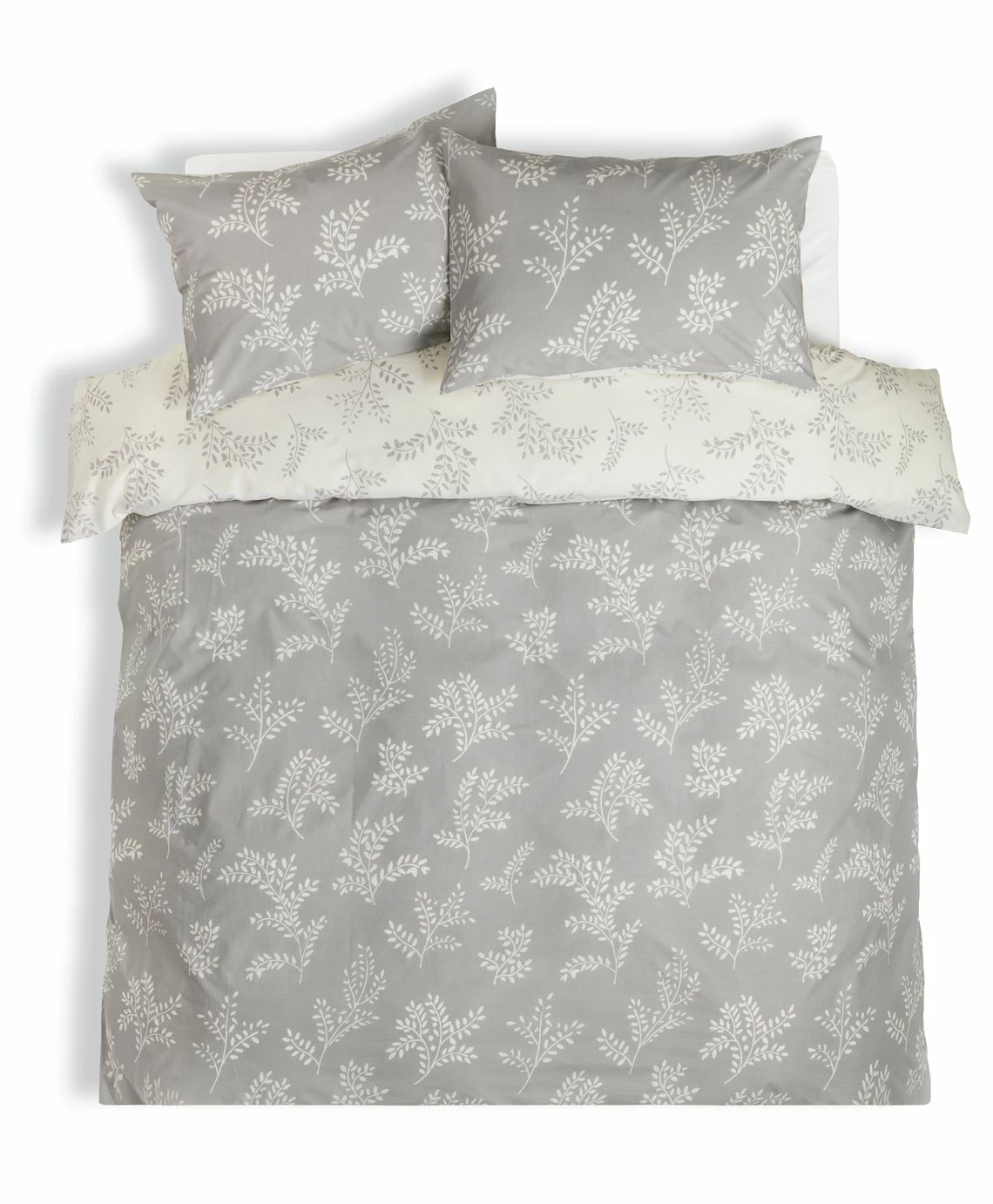 Fresh, floral and charming. Designed in tranquil grey and milky white, our polycotton single duvet set brings a peaceful, dreamy feel to your boudoir. This breathable and light bedding set helps keep your temperature steady to ensure a comfortable night's sleep. With a delicate flowery sprig pattern on either side, you can simply flip the set over whenever you fancy a new look. Snuggle in.