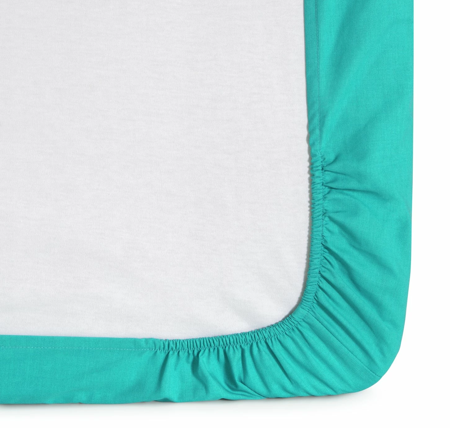 Add a playful pop of color to their bedtime routine. Our dynamic duo of fitted cot bed sheets gives you the option of a plain sheet or one patterned with cheerful building blocks. Made in 100% cotton and designed with elasticated edges for a super snug fit, they're on and off in a jiffy. Handy for a speedy refresh. Easy care, this bright pair are always on hand for a snuggly, cuddly bedtime.