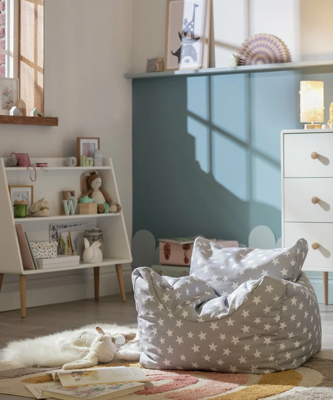 Brighten up your child's room with this star spangled, fun bean bag armchair. Perfect for snuggling up for story time or watching their favourite movie. The unique design gives wraparound comfort and it's lightweight enough to lift and place, wherever they like. This starry seat is made from durable, wipe-clean polyester, so it'll handle its share of daily wear and tear. From playtime to bedtime, this'll be the star of the show.