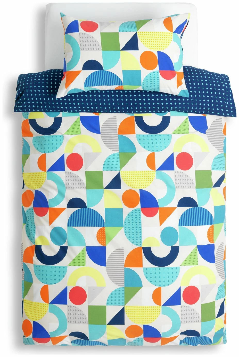 Meet our multi-coloured, twin pack, double sided, geo printed, burst of brightness duvet sets. Phew. Never a dull moment even on a rainy day with this bedding around. And just in case it all gets too wild, then simply flip to find a contrasting calm, single colour behind. What a totally fabulous solution.