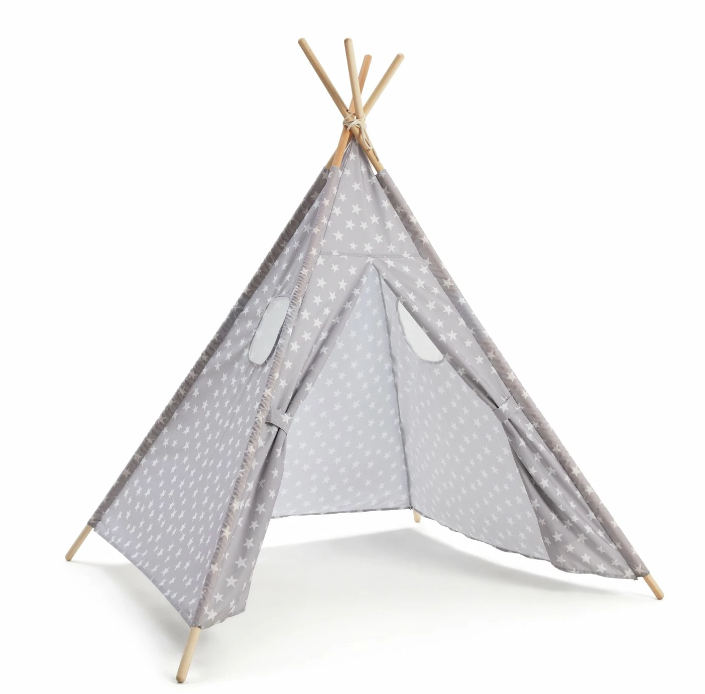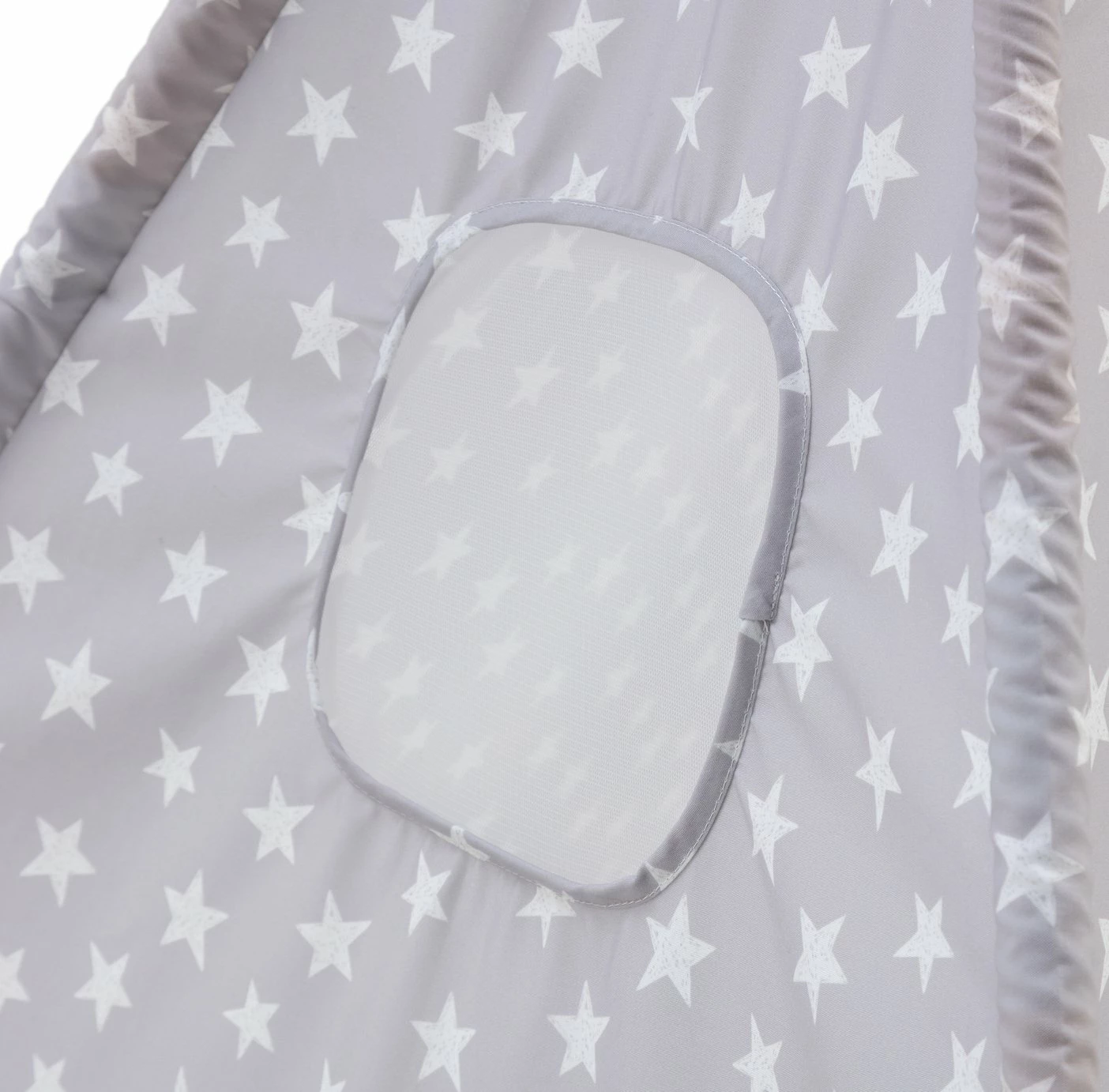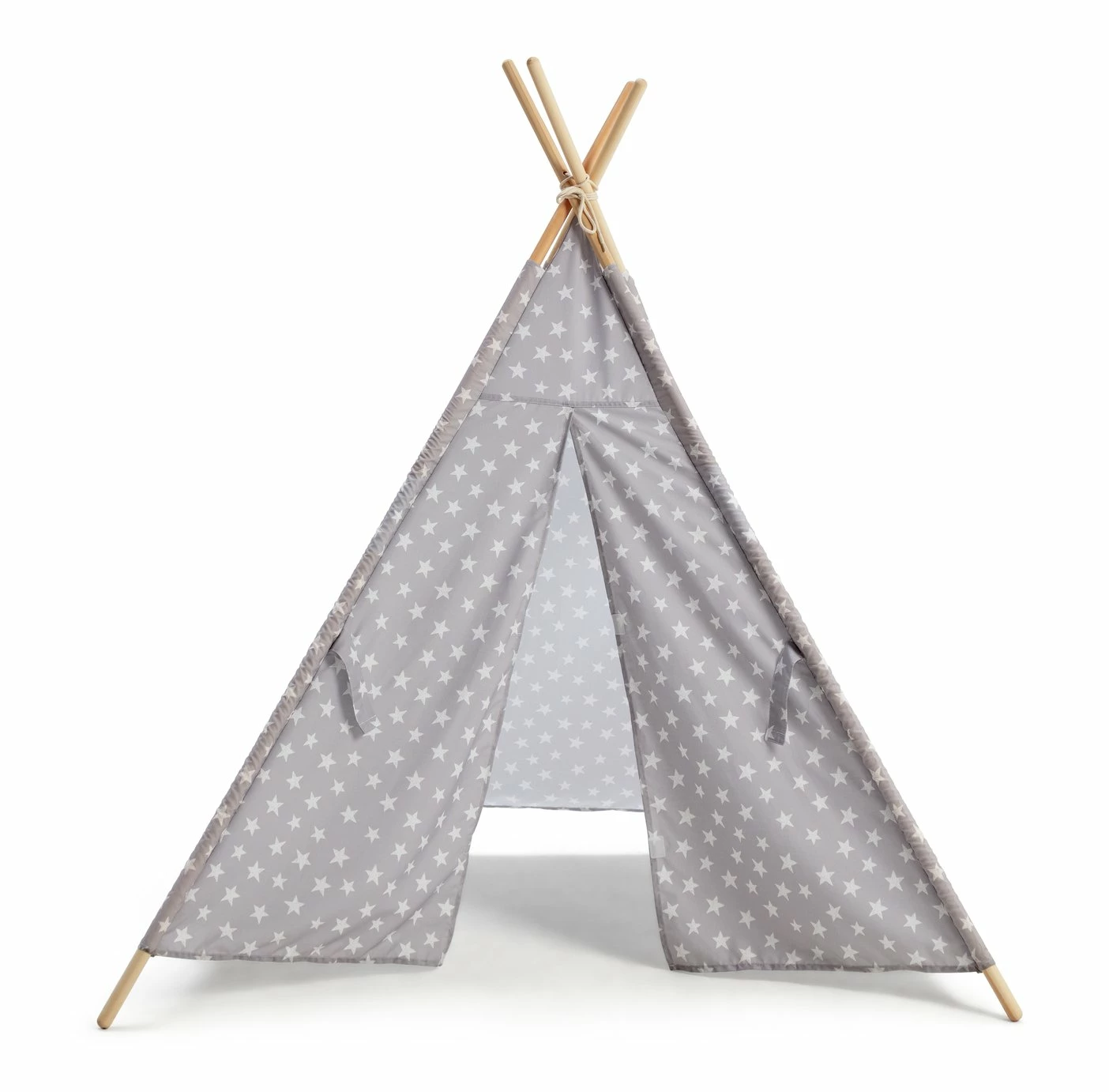 Camp out under the stars. Our cosmic teepee tent in grey and white makes a magical hideout for young explorers. Indoor cosy den or reading nook? Sorted. Pop it up in the garden for a shady spot, too. Let their imaginations run wild in a space that's all their own. Easy to put up and pack down, simply tuck away the folding frame when playtime's over. It's a sparkling choice.