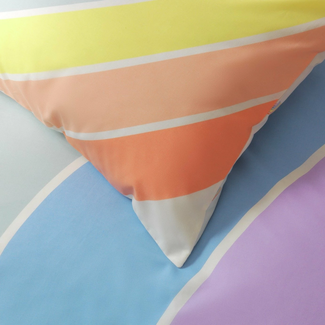 Wrap them up in a dreamy swoosh of color. Our magical, rainbow duvet set has bedtime bliss written all over it. In soft pastel shades to lull your little ones to sleep in no time. Made in an easy-care cotton mix, this joyful design is the perfect centerpiece for a fairytale bedroom. There's a crisp white and rainbow pattern on the reverse, so you can opt for a more minimal look whenever you like. Totally snuggleworthy.