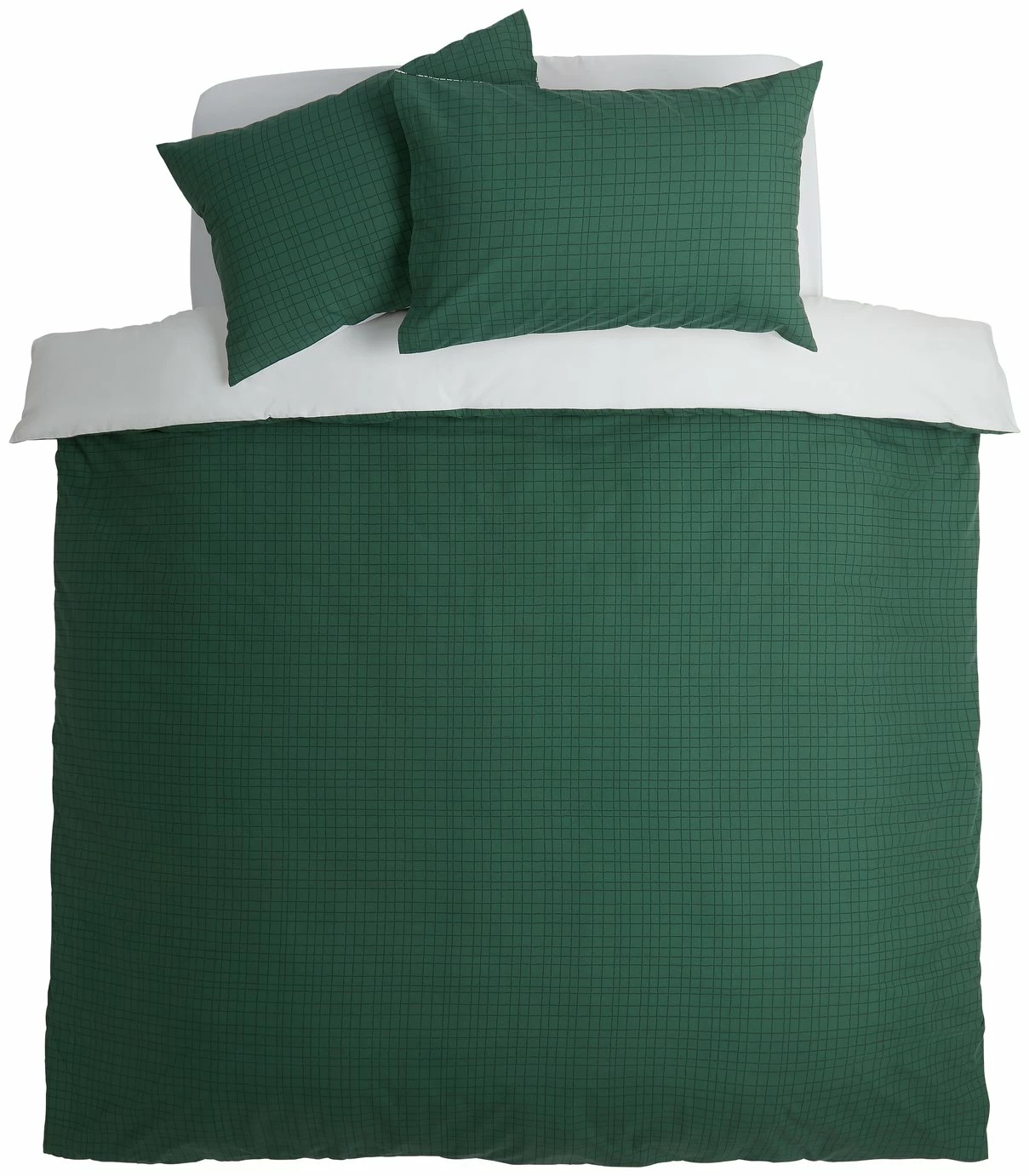 Enjoy nights on the town. Soft and light to the touch, this characterful polycotton duvet set brings the bustle of London to your bedroom. Two looks in one. It has a monochrome skyline on one side and a charming green check on the other. So, you can mix things up depending on your mood. What a capital idea.