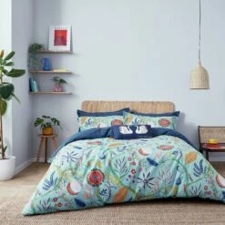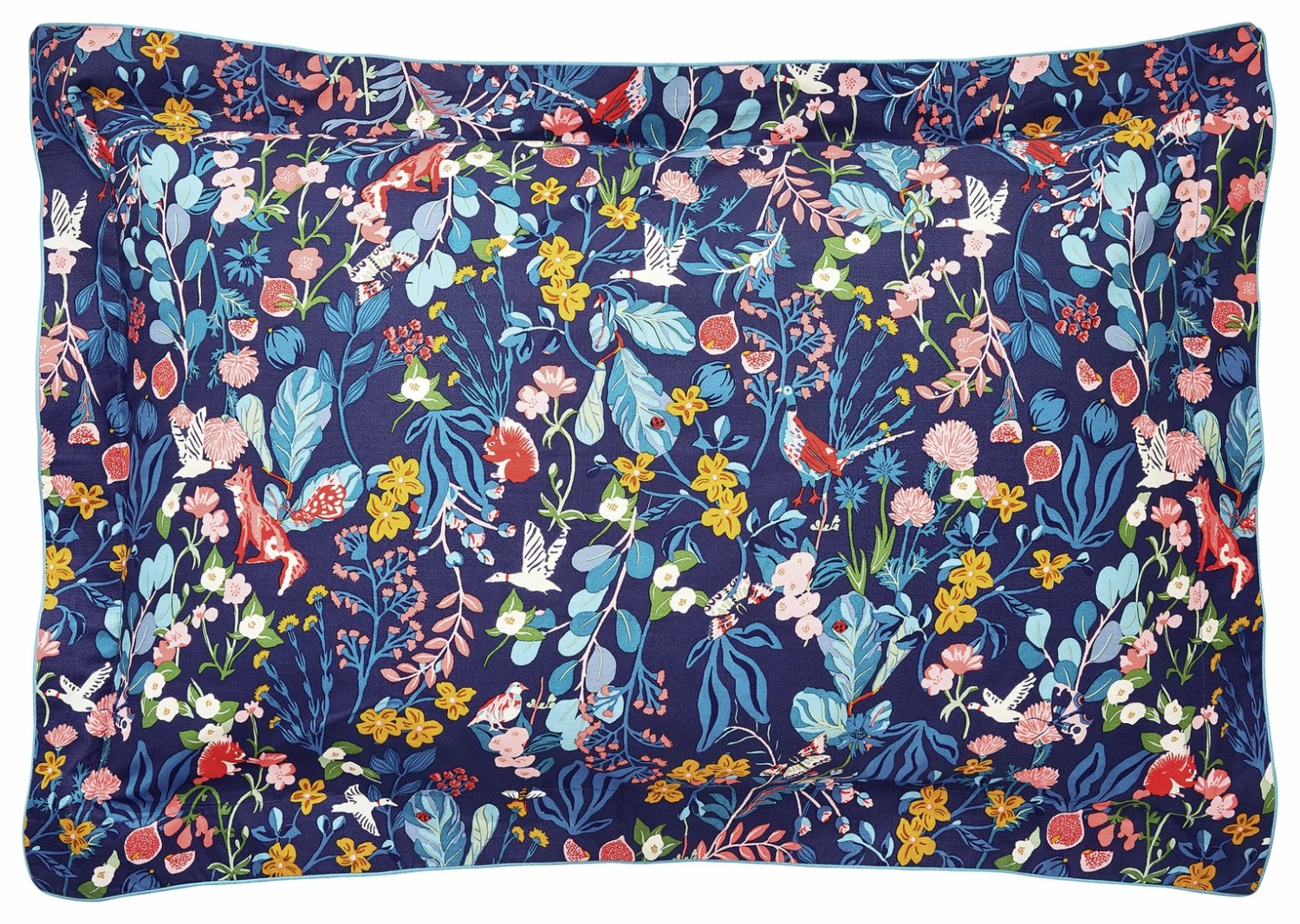 From squirrels and foxes to birds and butterflies, this bedding set brings together the best of the British woodland in one beautifully hand-drawn ditsy print. You'll be forever finding new things hidden amongst the whimsical print while the bold colours will brighten even the greyest of days. The animal adventures continue the reverse, set against a contrasting white background while the edges are finished with blue cord piping.