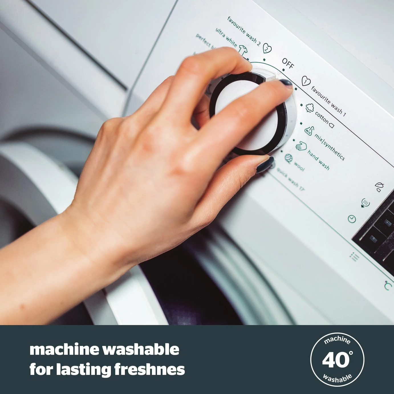 - Machine washable at 40C.