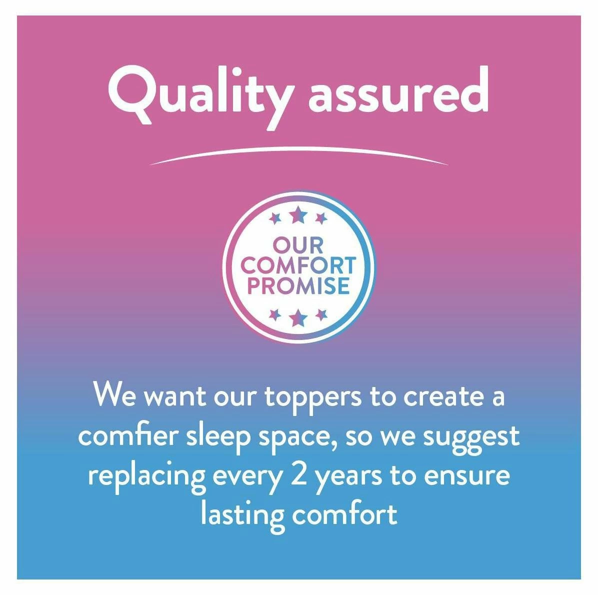 At Slumberdown we believe everybody deserves a better night's sleep. The Slumberdown Climate Comfort Topper has a breathable filling which wicks away moisture resulting in a cool, dry sleep space. The soft touch cover ensures your mattress is protected from sweat and stains. This quilted topper is 2.5cm deep and fits to your bed with a secure skirt, suitable for mattresses up to a depth of 35cm. What's more our products are Easy Care which means they can be machine washed to ensure a clean and fresh sleep space.