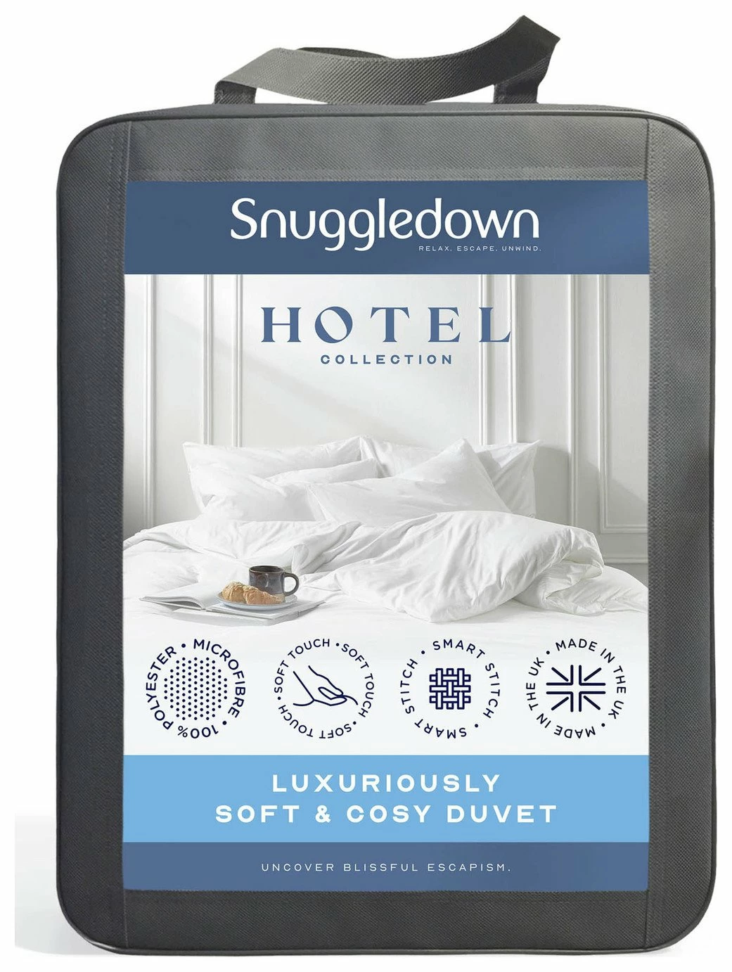 The Snuggledown Luxurious Hotel 10.5 Tog Duvet offers hotel quality luxury in the comfort of your own home. With wonderfully soft-touch embossed covers and silky soft hollowfibre filling, you get that indulgent hotel luxury feeling night after night. Offering unsurpassed comfort, this 10.5 Tog duvet is perfect for all year round use, so you can sleep easy whatever the season. Made in the UK, Packaging contains 30% recycled content minimum.